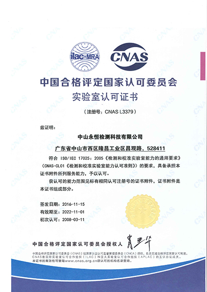 永恒檢測嚴格按照ISO/IEC 17025建立實驗室管理體系,獲得CMA(國家認證認可監(jiān)督管理委員會)認證及CNAS(中國合格評定國家認可委員會)認可,所出具的檢測報告具有法律效力和國際公信力。